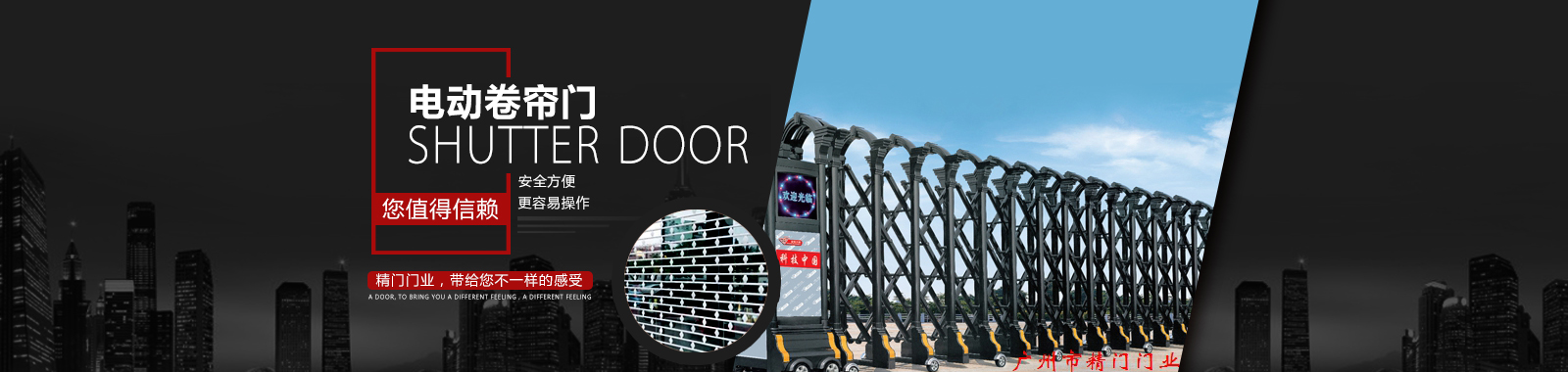 廣州市精門門業有限公司是一家集研發、生產、銷售、安裝、服務為一體專業從事防火卷簾門、電動卷閘門、抗風卷簾門、水晶卷閘門、伸縮門、不銹鋼通花閘、澳式靜音卷簾門、歐式卷閘門、防爆卷閘、車庫門、工業推拉門、鋁合金卷閘門、鋁合金卷簾門窗、不銹鋼電房門、快速卷簾門、綜合性、專業性機構。數年來,精門門業一直專注于技術創新,并引進歐美先進技術,通過不斷完善與進取,始終如一為客戶提供高品質的產品和服務。